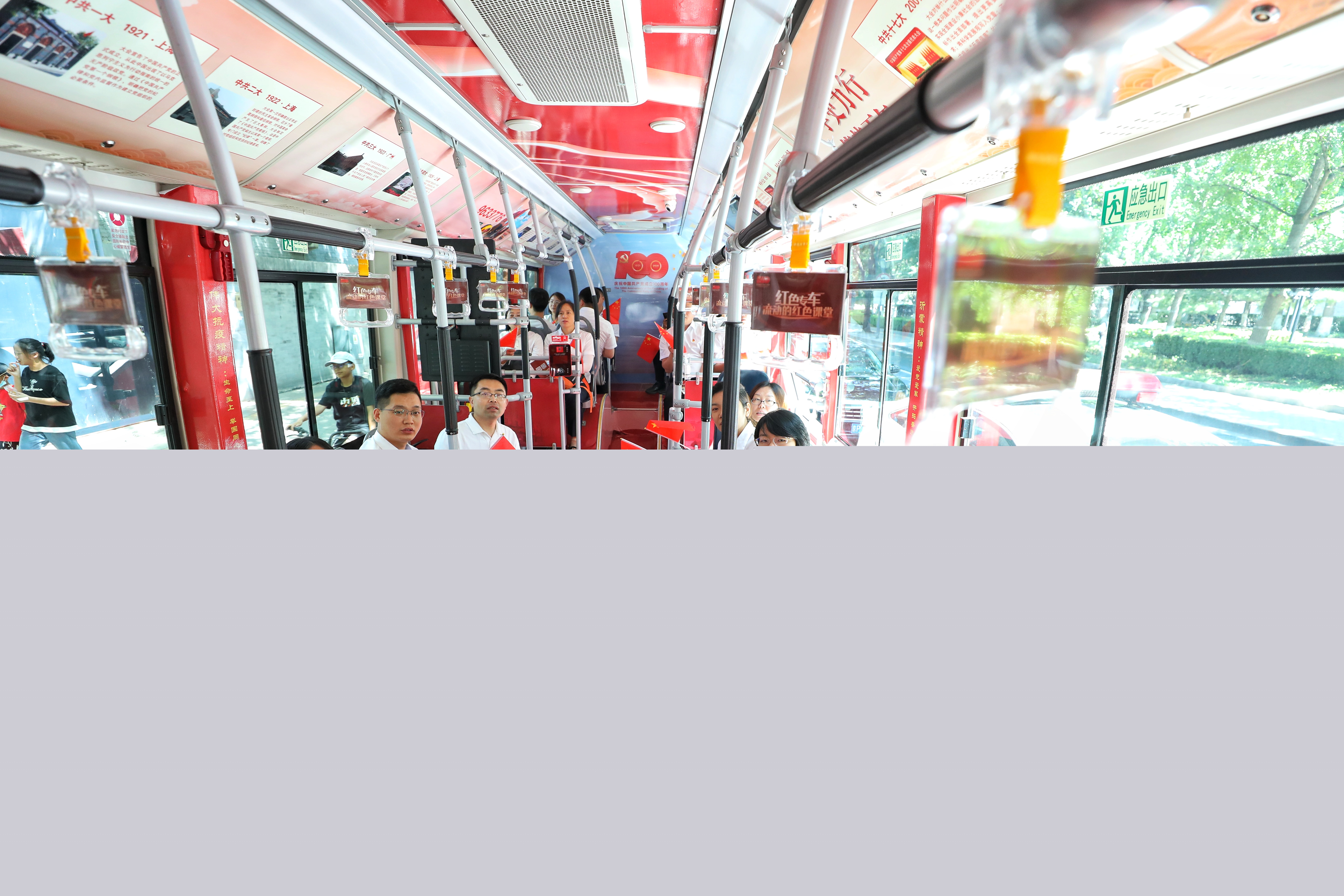 走進(jìn)車廂,線路途經(jīng)的紅色教育基地、名人故居等介紹信息映入眼簾,車載電視滾動播放黨史宣傳教育片、紅色歌曲,廣利核黨員還通過掃描扶手上的二維碼,收聽有聲黨史學(xué)習(xí)教育音頻,一起唱響那首銘記在心的《沒有共產(chǎn)黨就沒有新中國》,并在車內(nèi)莊嚴(yán)宣誓,重溫入黨誓詞。通過不同媒介形式的紅色熏陶和感化,讓大家在沉浸式體驗中接受黨史學(xué)習(xí)教育。